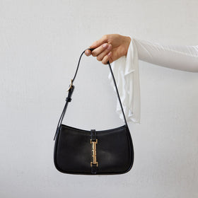 Diese elegante Umhängetasche aus tiefschwarzem Leder verkörpert mit ihrem minimalistischen und doch raffinierten Design die Ästhetik des alten Geldes. Die strukturierte Form und die glatte Oberfläche strahlen zeitlose Klasse aus. Die subtilen goldenen Beschläge an der Vorderseite sorgen für einen Hauch von Raffinesse, ohne aufdringlich zu sein, und passen perfekt zum unaufdringlichen Luxus der Old-Money-Mode.