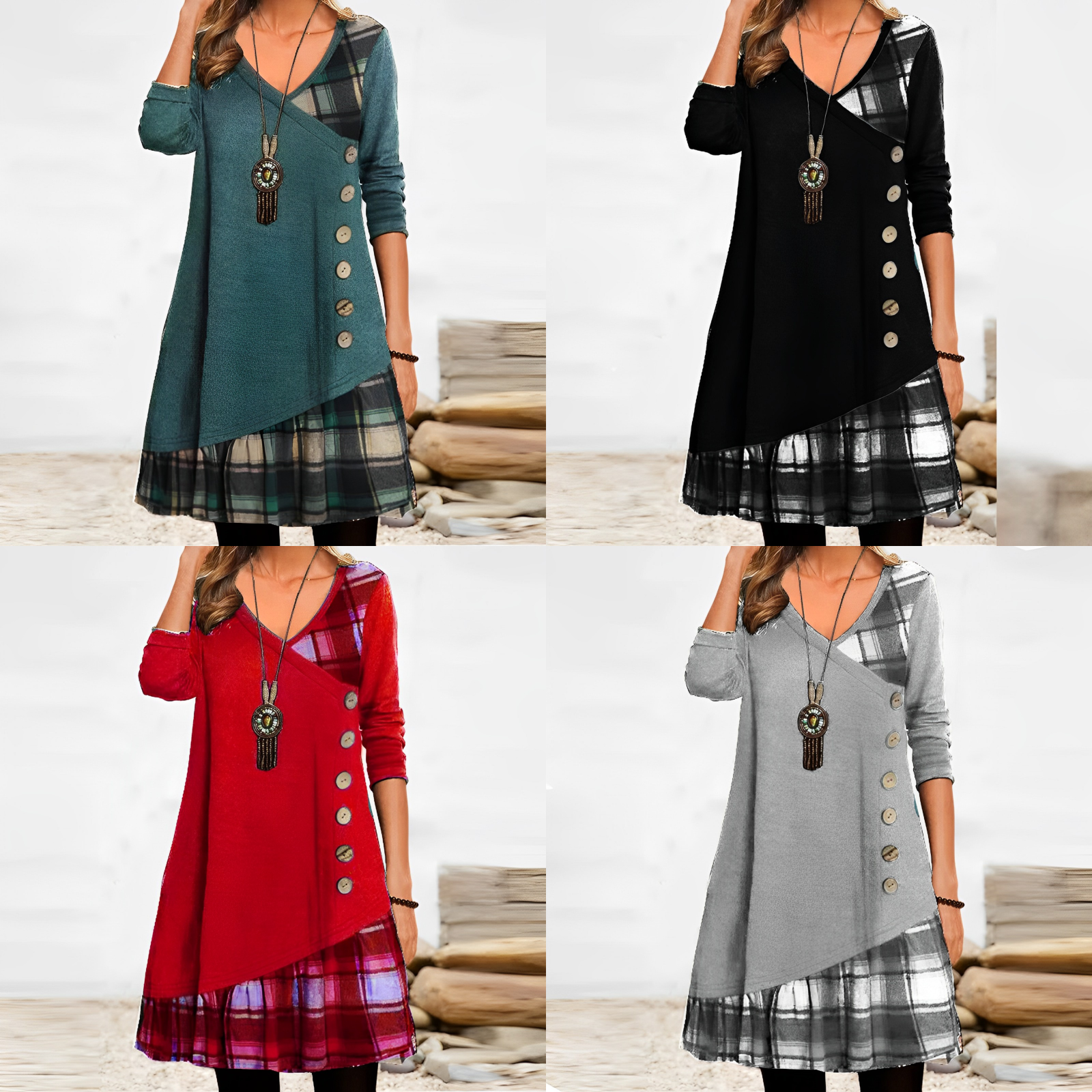 Entdecken Sie unser neuestes Kleid, das Camila Geometrisch Kariertes Kleid, ein Muss für Ihre Garderobe! Mit seiner tollen Passform und seinem luxuriösen Aussehen wird er Ihnen ein Lächeln ins Gesicht zaubern! Sind Sie bereit, diesen Blickfang diesen Winter zu tragen?