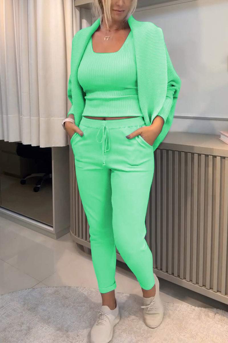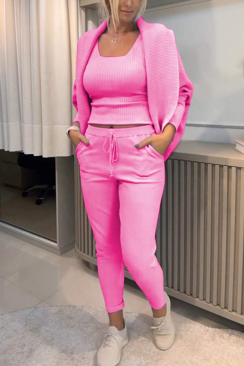 - Set: Beinhaltet geripptes Top, lockere Cardigan und Jogginghose