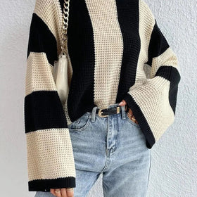 Wickeln Sie sich in luxuriöse Gemütlichkeit mit diesem zweifarbigen Pullover, der durch seine weiten Ärmel und den lockeren Schnitt besticht. Die leicht fallende Silhouette bringt eine elegante, komfortable Note an kühlen Tagen – perfekt für das Büro oder entspannte Wochenendausflüge.