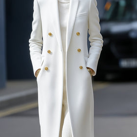 Verleihe deiner Wintergarderobe mit unserem stilvollen weißen langen Doppelknopfmantel einen neuen Touch