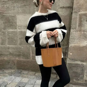 Krohn-e | Blockstreifen Strick Lockerer Pullover