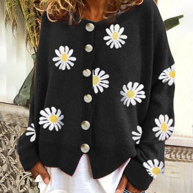 Krohn-e | Blumengemusterte Strickjacke Weich und Leicht Lässige Eleganz