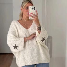 Eine ideale Mischung aus Stil und Komfort für Ihre Garderobe! Dieser Pullover besticht durch ein bezauberndes Sternenmotiv an den Ärmelbündchen, das einen niedlichen Akzent zu einer klassischen Silhouette hinzufügt. Dank der lockeren Passform bietet der Pullover ein entspanntes Tragegefühl und ist sowohl ideal zum Überziehen über Ihre Lieblingsoberteile als auch solo tragbar.