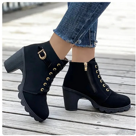 Diese stylischen Damen-Stiefeletten vereinen ein einfaches Obermaterial mit einem funktionalen Reißverschluss an der Seite. Die klaren Linien und die moderate Absatzhöhe machen sie zu einem flexiblen Modell für den Alltag und die Freizeit. Ob zu Jeans, Röcken oder Stoffhosen – die Stiefeletten lassen sich mühelos in unterschiedlichste Outfits integrieren.