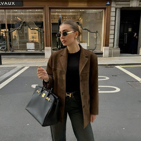 - Qualitäts-Wildleder: Aus feinem Wildleder gefertigt, strahlt diese Jacke Raffinesse aus und vermittelt ein angenehm weiches Gefühl.