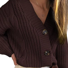Krohn-e ist der neue Lieblings-Cardigan für kalte Tage – weit geschnitten, gemütlich und voller Struktur. Mit auffälligem Zopfmuster, großen Knöpfen und einem lässigen Oversize-Stil bringt er Wärme und Mode in Ihre Garderobe.