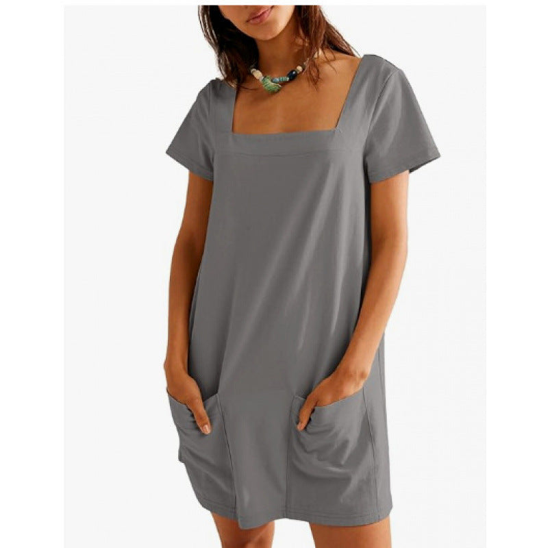 Kurzarmes Fudus Taschenkleid mit quadratischem Ausschnitt