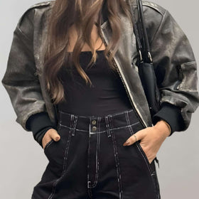 Diese modische Lederjacke für Frauen in Kurzform ist ein echtes Statement-Stück. Klassischer Leder-Look trifft modernes, kurzes Design für einen stilvollen Auftritt. Schutz vor Kälte und Wind, ideal für Herbst/Winter. Casual oder schick kombinierbar, für einen edgigen und zeitlosen Look.