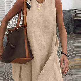 Ob für ein Treffen mit Freunden, ein Date oder eine besondere Veranstaltung - das kurze Leinenkleid von Kybelle ist perfekt für jeden Anlass im Frühling und Sommer.