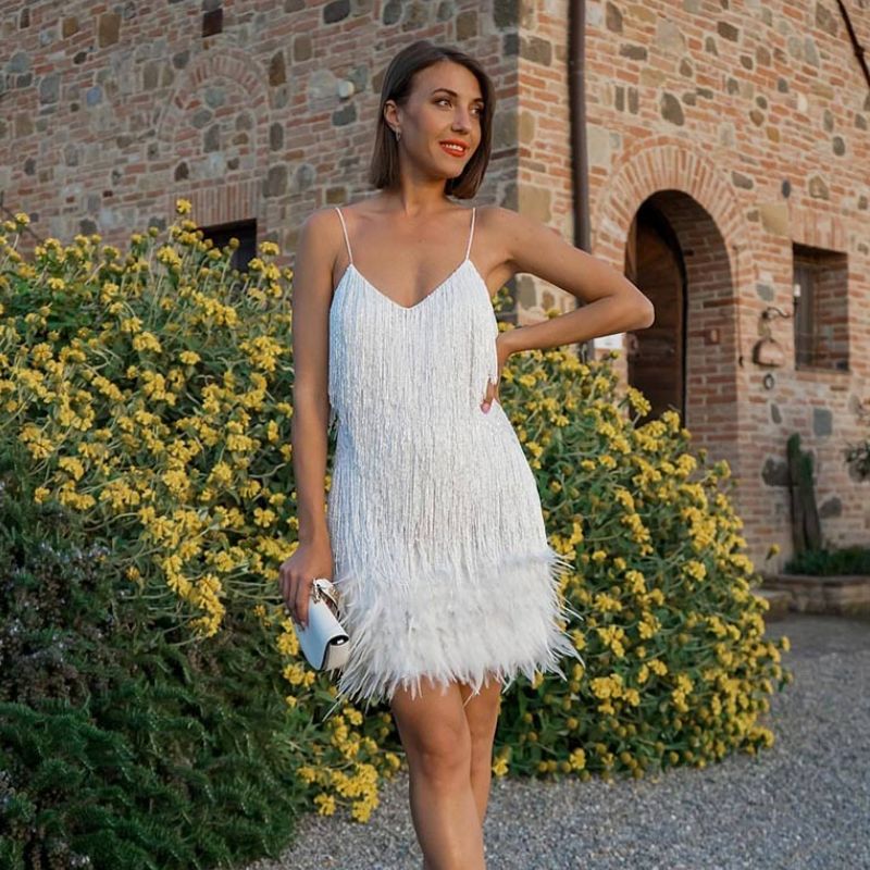 Kurzes Paillettenkleid mit Fransen – Sirka