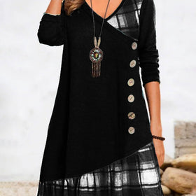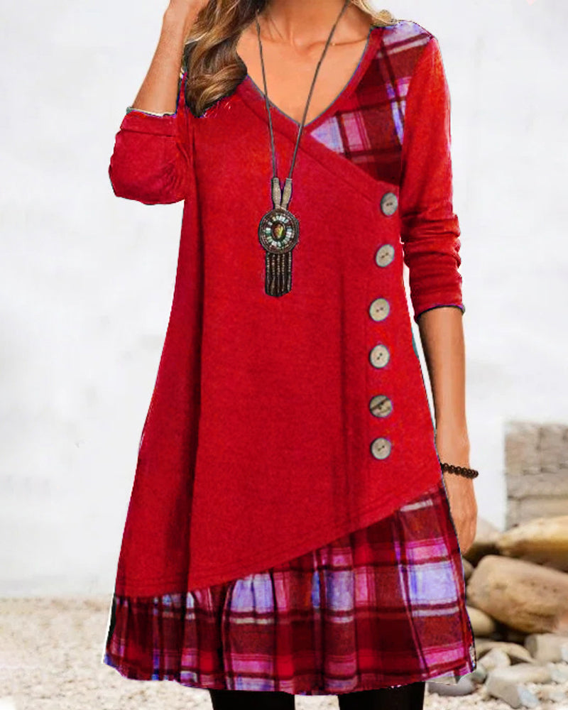 Langarm-Leinenkleid im Karomuster