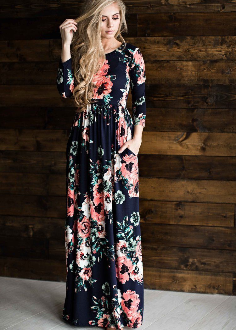 Langes Blumenkleid von Krohn-e mit weitem Saum