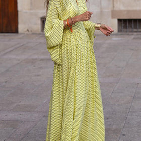 - Femininer Look: Der V-Ausschnitt und der weite Saum verleihen dem Kleid eine feminine Note.