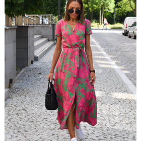 Leichtes Sommerkleid mit V-Ausschnitt im floralen Wickeldesign