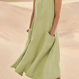 | 1 - Leinen-Ärmelloses Kleid mit Taschen - Lässige Strandbekleidung | |