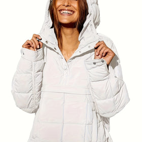 Die Leyvalis Kapuzenmantel ist perfekt für kalte Tage. Diese lässige, warme Damenjacke kombiniert Komfort, Wärme und Stil. Der Kapuzenmantel sorgt für einen entspannten Look und schützt vor Wind und Kälte – ideal für Alltag oder Spaziergänge.