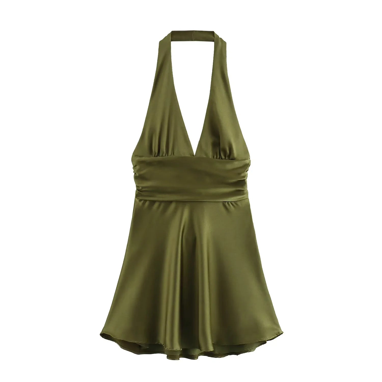 Rocktyp: A-Linie; Stil: Urban chic; Zusammensetzung: Einzelstück; Rocklänge: Miniröcke; Ausschnitt: Neckholder; Mode Merkmale: Offener Rücken; Stoff: Satinmaterial; Rockklassifizierung: Kleid; Stil: Urbaner Stil; Finish: Seidiger Glanz
