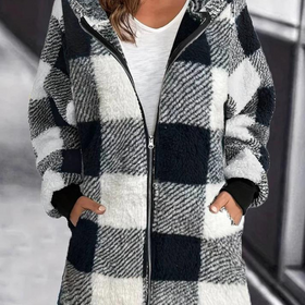 Lyra Teddy-Mantel mit Kapuze im Karomuster
