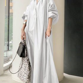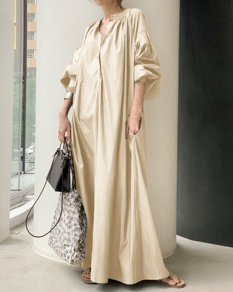 Dieses bezaubernde Kleid verbindet fließenden Stoff mit minimalistischem, elegantem Design. Perfekt für diverse Anlässe, von entspannten Treffen bis zu eleganten Feiern. Es bietet höchsten Komfort ohne Kompromisse beim Stil, für Selbstvertrauen und Anmut. Aus hochwertigen, leichten Materialien gefertigt – ein Symbol für hochwertige Handwerkskunst und stilvollen Komfort.