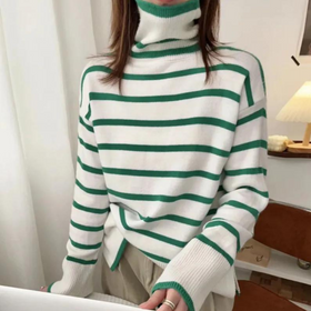 Der Clarice Trendy gestreifte Rollkragenpullover für Damen: weich, bequem und vielseitig einsetzbar. Die schöne Passform und der stilvolle Look überzeugen.