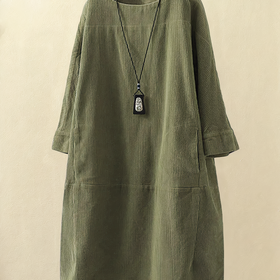Dieses Kleid aus Cord und Nylon ist strapazierfähig und weich. Lange Ärmel und O-Ausschnitt verleihen ihm einen klassischen Look. Verschiedene Farben verfügbar.