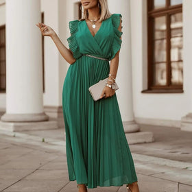 Maelie - Eleganz in Grün: Plissiertes Maxikleid