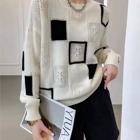 Dieser Pullover überzeugt durch sein geometrisches Vintage-Patchwork-Design, das Ihrer lässigen Streetwear einen einzigartigen Touch verleiht.