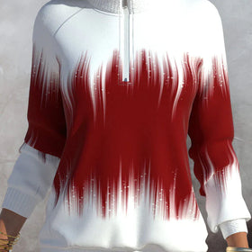 Ein hochgeschlossener Damenpullover mit halbem Reißverschluss, der Stil und Komfort vereint. Mit seinem lebhaften Farbverlaufsdruck und lässigem Reißverschlussdesign ist diese langärmelige Bluse perfekt für alle, die sich abheben wollen. Die lockere Passform bietet Komfort und moderne Mode für Freizeitaktivitäten.
