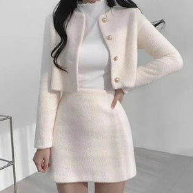 Setzen Sie ein zeitloses Modestatement mit unseren Eleganten Tweed-Sets. Tweed verleiht klassische Eleganz und sorgt für einen mühelos schicken Look. Dieses Set ist für Frauen, die einen stilvollen und modernen Look anstreben.