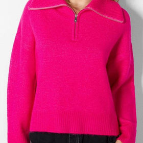 Rosa-roter Pullover mit halbem Reißverschluss und Kragen von Fudus