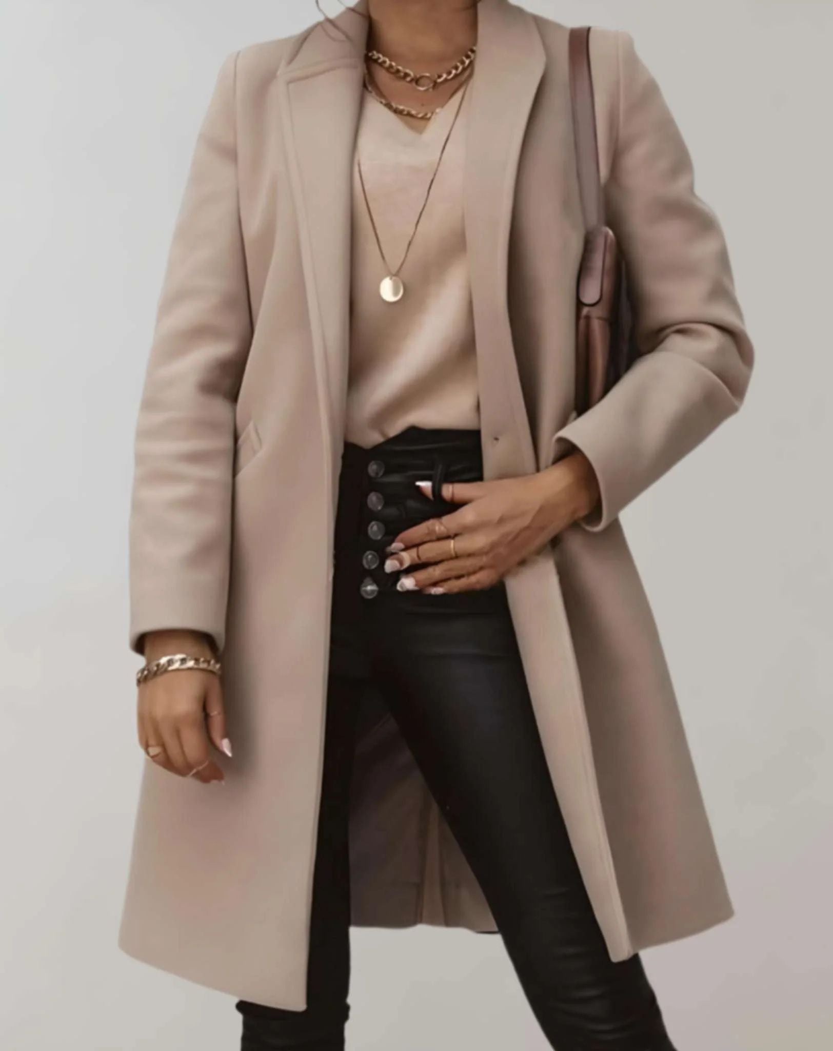 Dieser elegante Damen-Trenchcoat hält Sie bei kühleren Temperaturen stilvoll und warm. Perfekt für Herbst und Winter. Hochwertiger Stoff kombiniert Komfort und Stil.