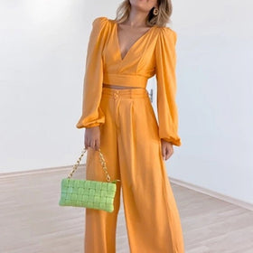 Rowina | Zweiteiliges Kleiderset in Orange für Damen: Strahlende Eleganz in einem Set