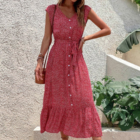 Genießen Sie sonnige Tage mit diesem leichten und verspielten Sommerkleid mit charmanten Rüschen.