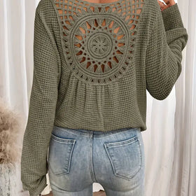 Das Sachaa Elegante Waffel V-Ausschnitt Shirt vereint Komfort und Raffinesse. Aus weichem Waffelstrickstoff gefertigt, bietet es einen strukturierten Look, der gemütlich und stilvoll ist. Der V-Ausschnitt verleiht ihm eine feminine Note, die lockere Passform sorgt für ganztägigen Komfort. Ideal für einen lässigen Abend oder einen entspannten Tag zu Hause.