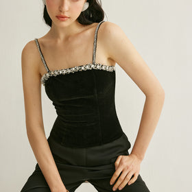 Samt-Cami-Top mit Strassbesatz von Fudus