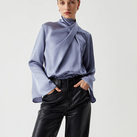 Satinbluse mit asymmetrischem, gefaltetem Rollkragen von Fudus