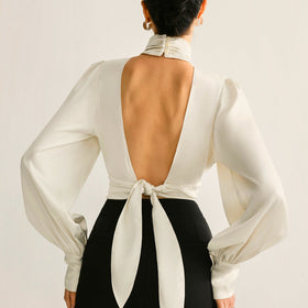 Satinbluse von Fudus, rückenfrei und seitlich gerafft