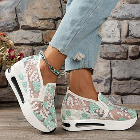 Die Turnschuhe aus hochwertigem Spitzenmaterial wirken trendy und feminin. Die Gummisohle bietet Traktion und Haltbarkeit.