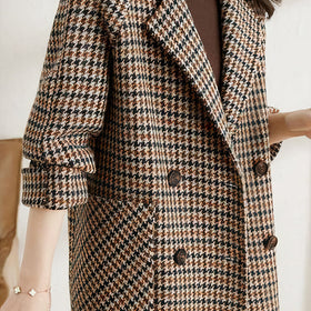 Unsere Hahnentritt-Jacke Bailee verkörpert stilvolle Gemütlichkeit und beständige Anmut. Entworfen für die moderne Frau, vereint sie Raffinesse und zeitlose Eleganz. Ideal für kühle Tage, Stilbewusstsein und flexible Garderobe. Der Einstieg in ein Reich der Raffinesse.