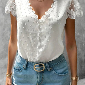 Diese elegante Sommerbluse mit V-Ausschnitt verbindet stilvolle Raffinesse mit luftigem Tragekomfort. Ihr fließender Schnitt und das leichte Material sorgen für ein angenehmes Hautgefühl, der feminine V-Ausschnitt verleiht subtile Eleganz. Perfekt für Alltag, Büro oder besondere Anlässe – kombinierbar mit Jeans, Röcken oder Stoffhosen. Ein zeitloses Must-have für warme Tage.