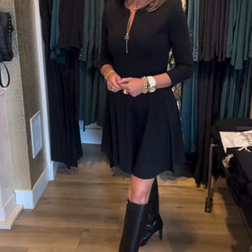 Das elegante Reißverschlusskleid Sharyn vereint Stil und Tragekomfort. Der einzigartige Reißverschluss am Ausschnitt, lange Ärmel und die A-Linie schmeicheln jeder Figur. Atmungsaktives Material sorgt für Wohlfühlkomfort im Frühling. Ein vielseitiges Kleid für Ihre Frühjahrsgarderobe.