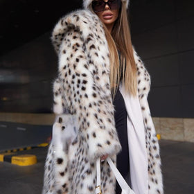 Der Natascha - Mantel im Schneeleoparden-Look vereint Eleganz und Funktionalität und ist der ideale Begleiter für die Winterzeit.