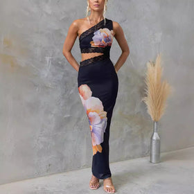 Schulterbedrucktes, figurbetontes Voile-Spitzenkleid von Fudus