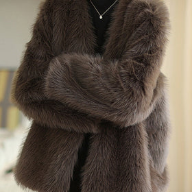 Eleganz und Wärme vereint – Seluna Boutique Mode Kaffee Kunstpelzmäntel