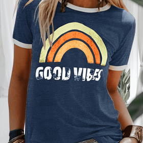 Unser bedrucktes "Good Vibe"-Shirt für Frauen vereint Mode und Positivität. - Es hat einen verspielten, modernen Aufdruck. - Die taillierte Passform ist bequem und vielseitig. - Kombinierbar mit Jeans oder Rock. - Aus weichem, atmungsaktivem Material.