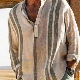 Das Tewdor-Hemd aus hochwertigem, leichtem und atmungsaktivem Leinen ist ideal für warmes Wetter. Stilvolles Streifenmuster und Großvaterkragen verleihen Raffinesse, die entspannte Passform sorgt für Komfort. Das Design ermöglicht vielseitige Kombinationsmöglichkeiten.