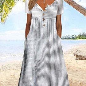 Genießen Sie die Leichtigkeit und Eleganz dieses Kleides, ideal für sonnige Tage!