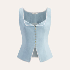 Spitzenbesetztes Top mit Knopfverschluss vorne