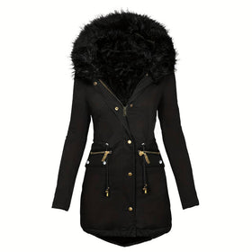 Warm und gemütlich: Aus Thermomaterial, hält Sie bei kaltem Wetter warm. — Vielseitig: Perfekt für Outdoor, Freizeit und formelle Anlässe. — Praktisch: Reißverschluss und Knopfverschluss vorne. — Stylisch: Kapuze mit Kunstfell und Kordelzug. — Funktionell: Mit Fronttaschen.